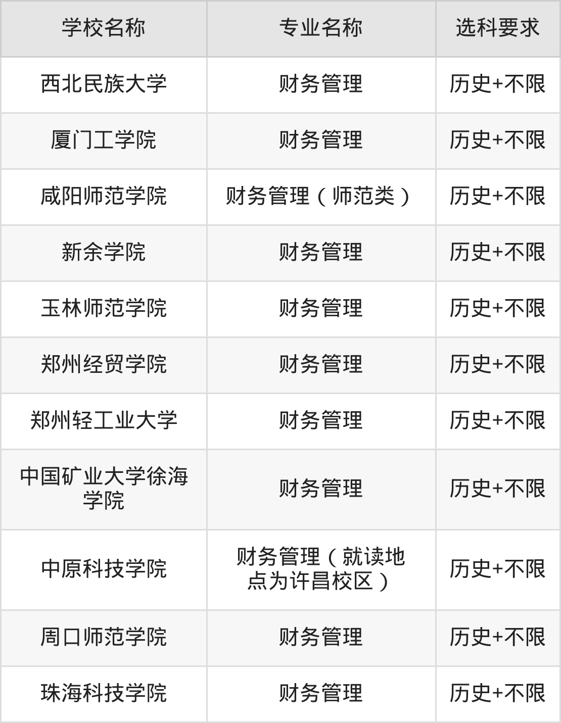 | 内蒙古民族大学 | 财务管理 | 物理+不限 |