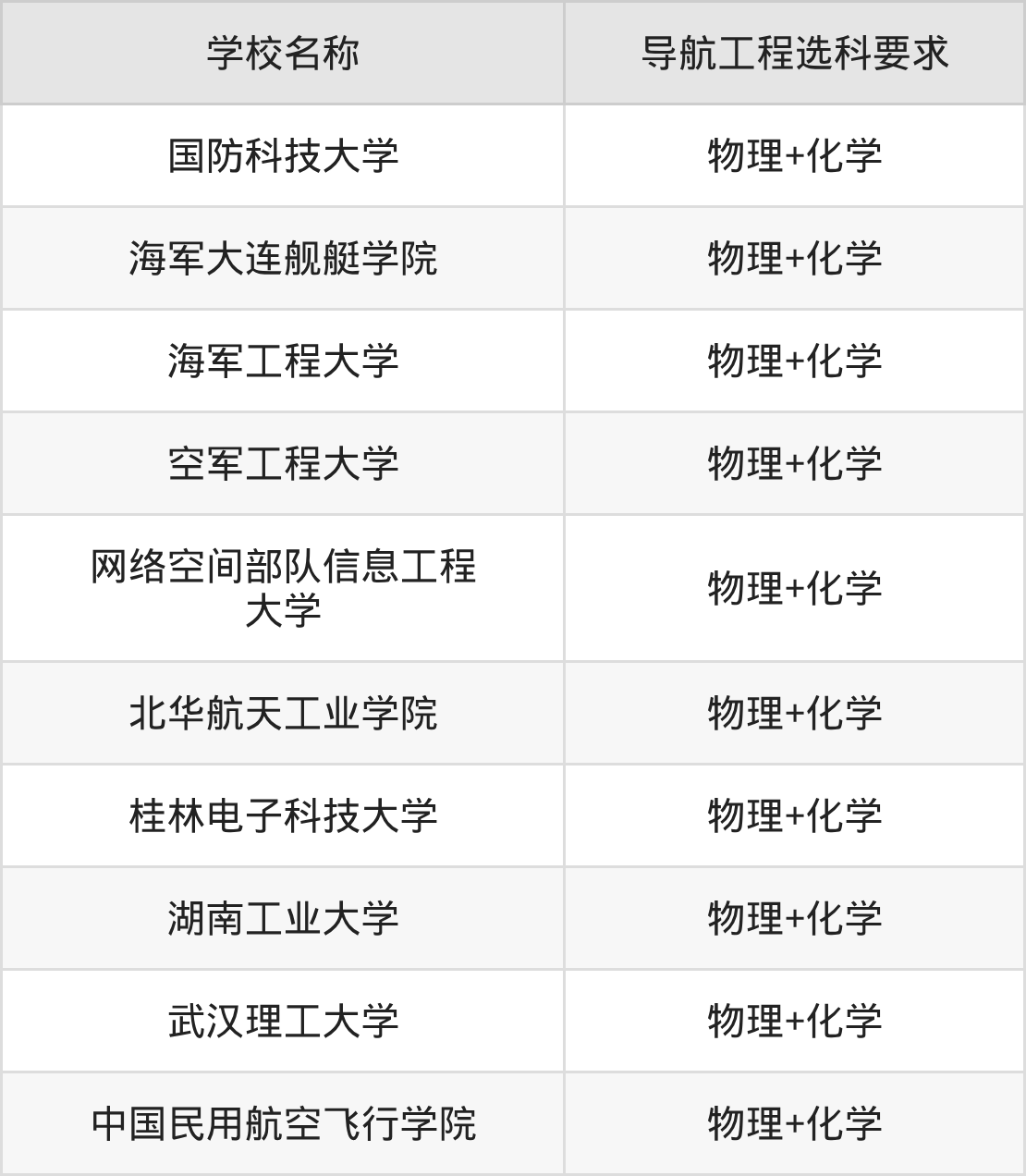 以河北高考最新招生计划为例进行统计,在不可报的学校中,有10所本科大学的导航工程专业招生时,要求考生必选“物理+化学”。