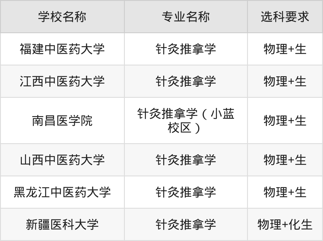 | 南京中医药大学 | 针灸推拿学 | 物理+化 |