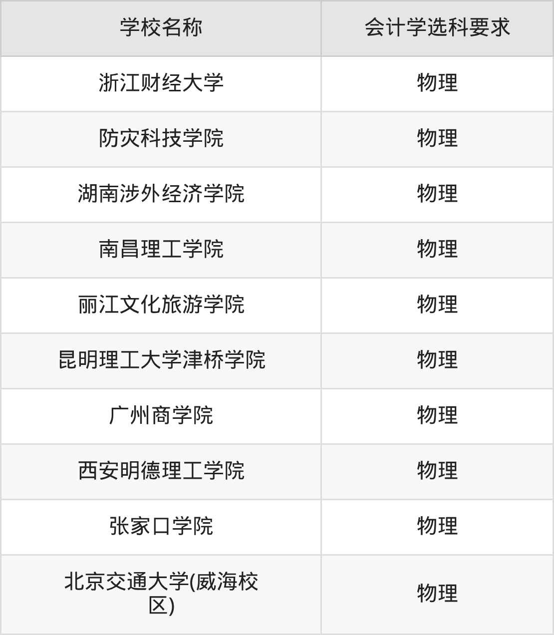 | 学校名称 | 会计学选科要求 |