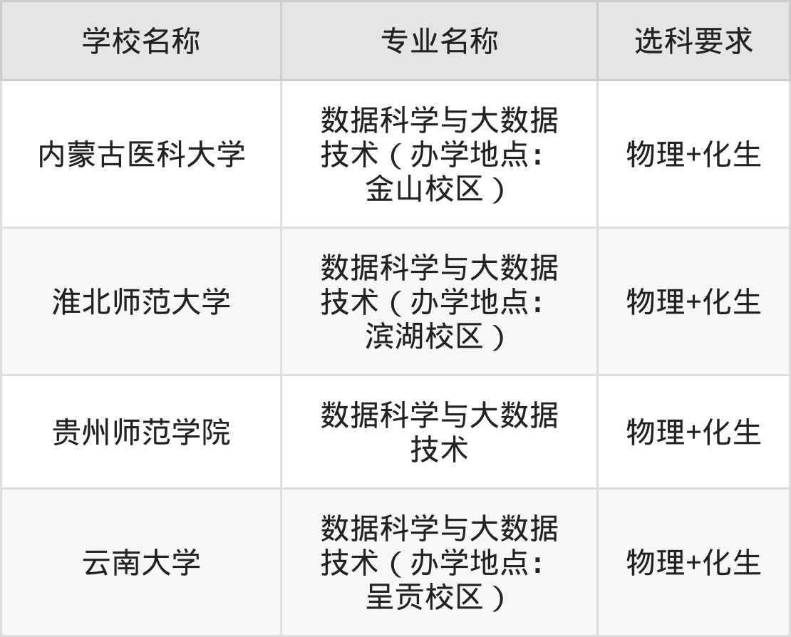 | 贵阳人文科技学院 | 数据科学与大数据 技术 | 物理+化 |
