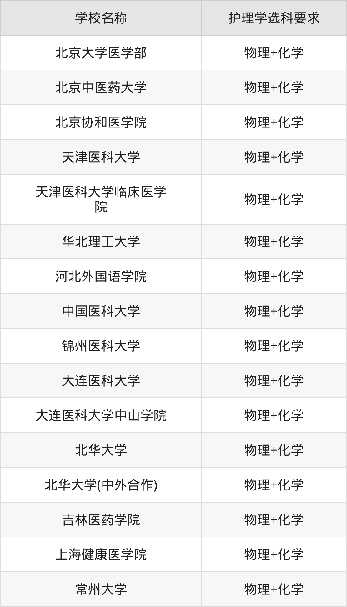 物生地组合的考生不符合这部分学校的选科要求,所以不可以报考这些学校的护理学专业。比如:北京大学医学部、北京中医药大学、北京协和医学院、天津医科大学、天津医科大学临床医学院、华北理工大学、河北外国语学院等。