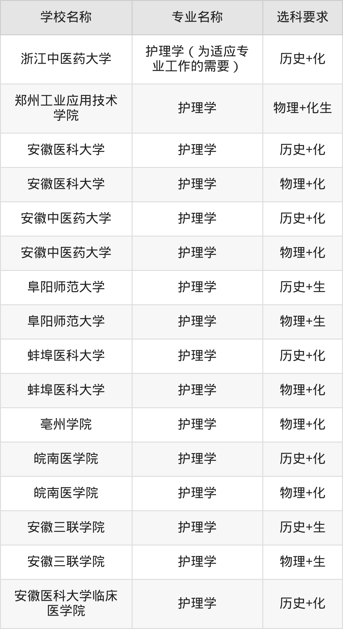 原因是:在安徽高考以“护理学”专业名称招生的145所本科大学中,有76所大学的护理学专业在招生时要求高考生必选“物理+化”,有34所大学的护理学专业在招生时要求高考生必选“历史+生”,有48所大学的护理学专业在招生时要求高考生必选“物理+生”,有19所大学的护理学专业在招生时要求高考生必选“历史+化”,有10所大学的护理学专业在招生时要求高考生必选“物理+化生”,有1所大学的护理学专业在招生时要求高考生必选“历史+化生”。