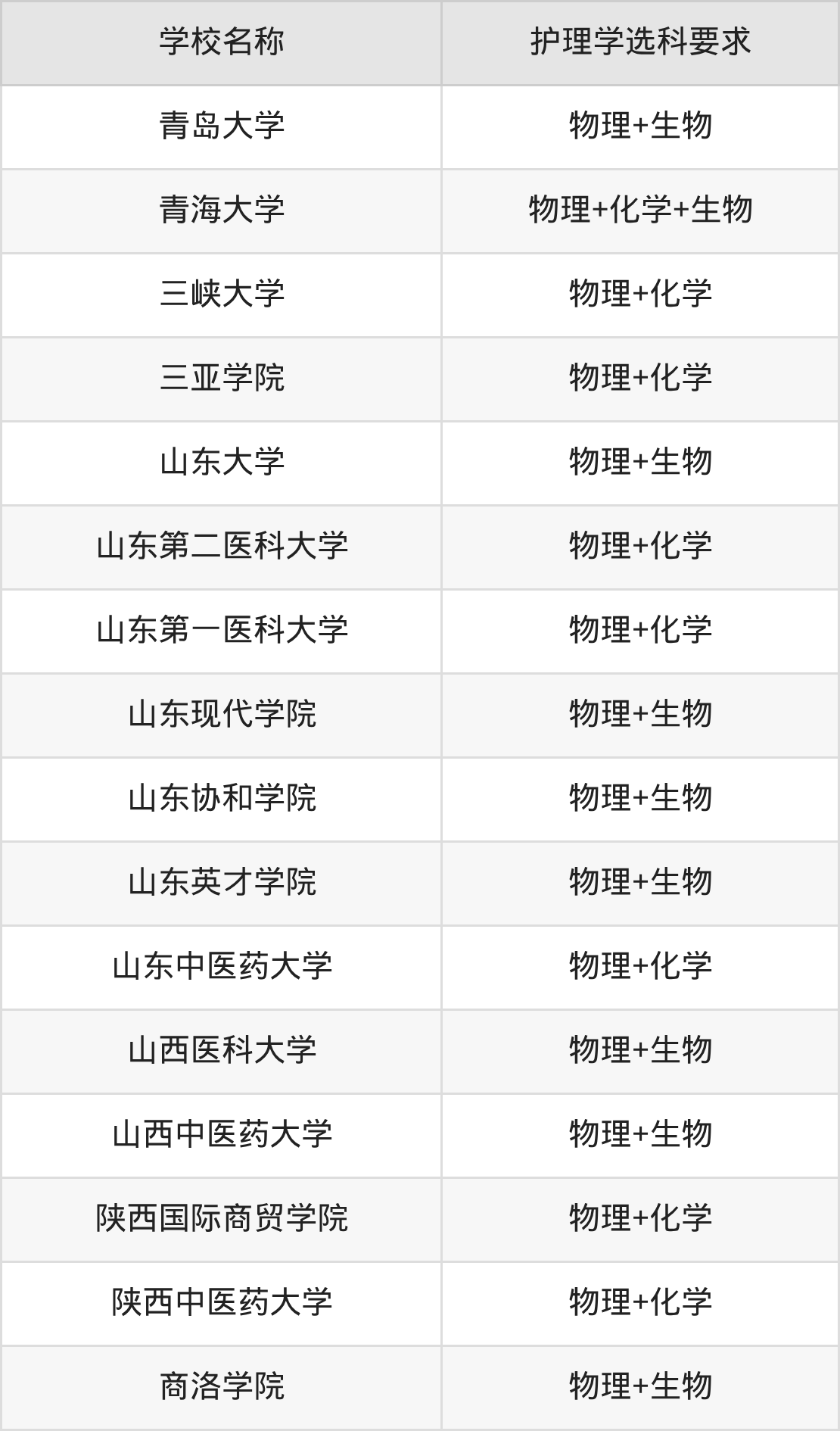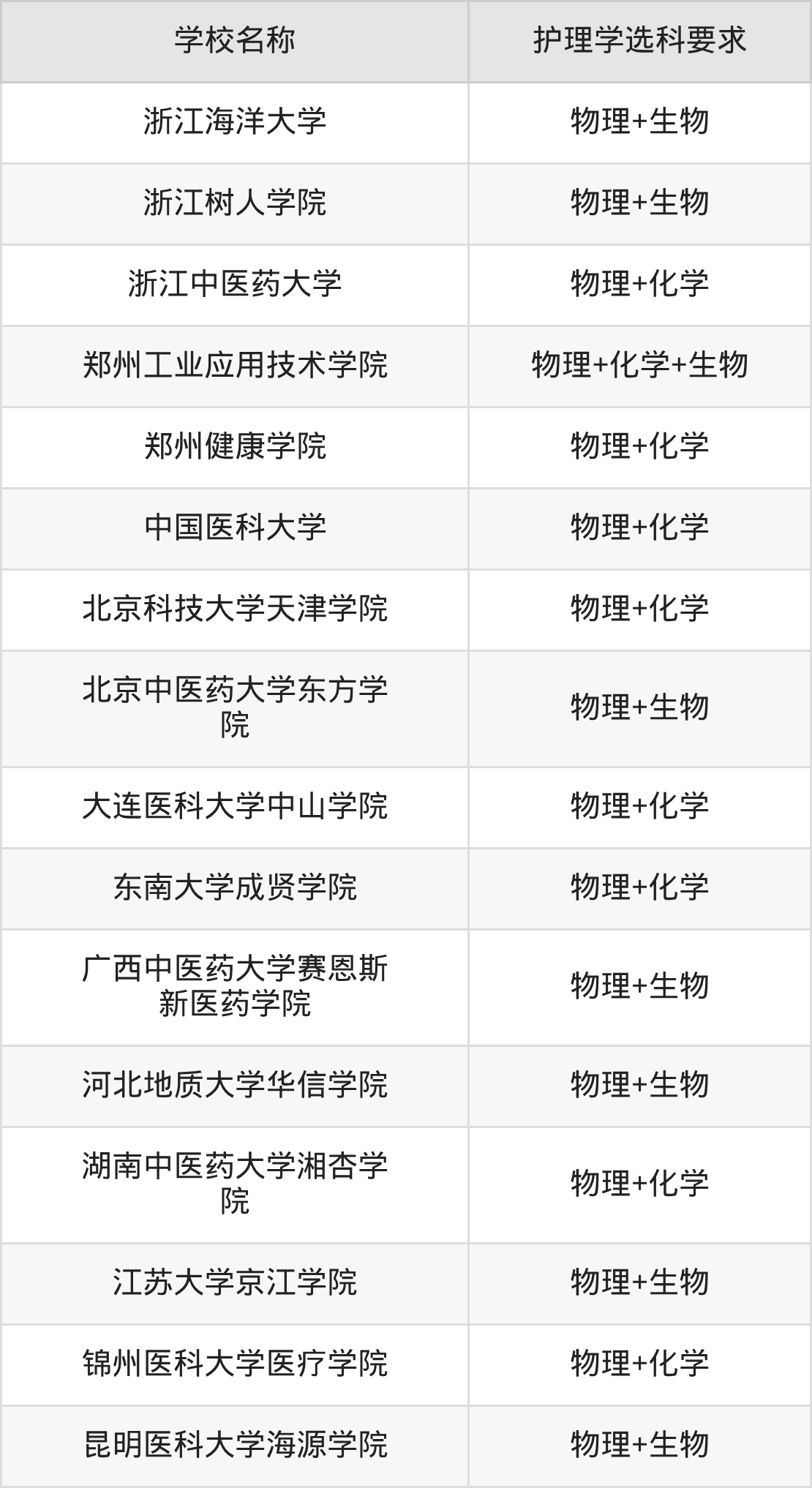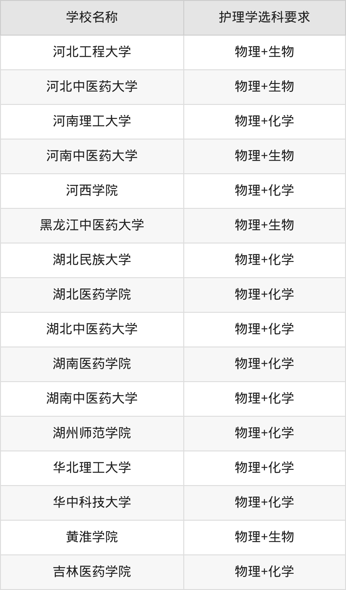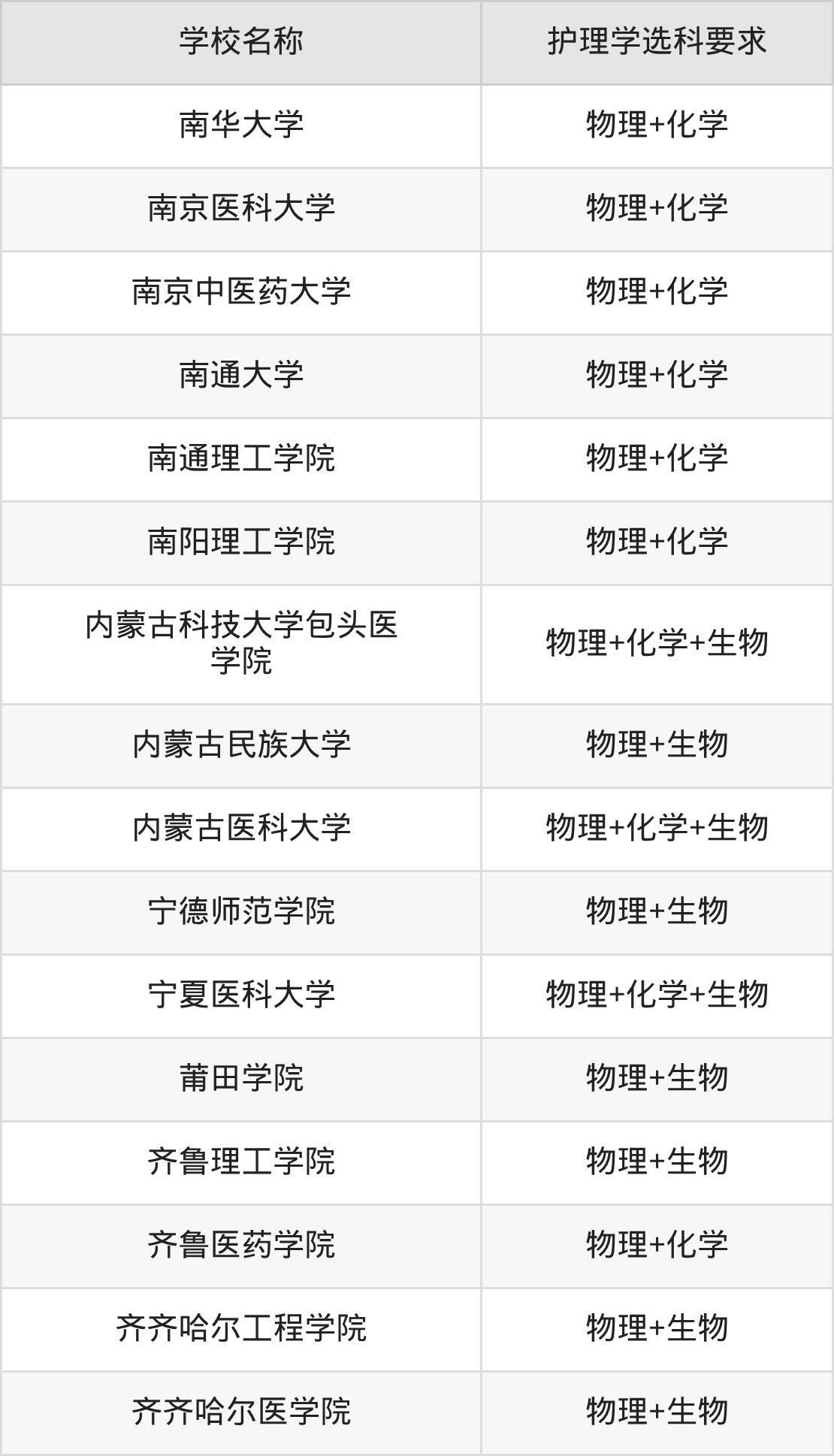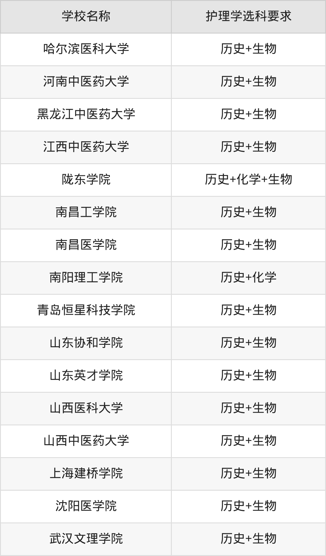 以安徽高考最新招生计划为例进行统计,在不可报的学校中,有92所本科大学的护理学专业招生时,要求考生必选“物理+化学”,有55所本科大学的护理学专业招生时,要求考生必选“物理+生物”,有10所本科大学的护理学专业招生时,要求考生必选“物理+化学+生物”,有4所本科大学的护理学专业招生时,要求考生必选“历史+化学”,有26所本科大学的护理学专业招生时,要求考生必选“历史+生物”,有1所本科大学的护理学专业招生时,要求考生必选“历史+化学+生物”。