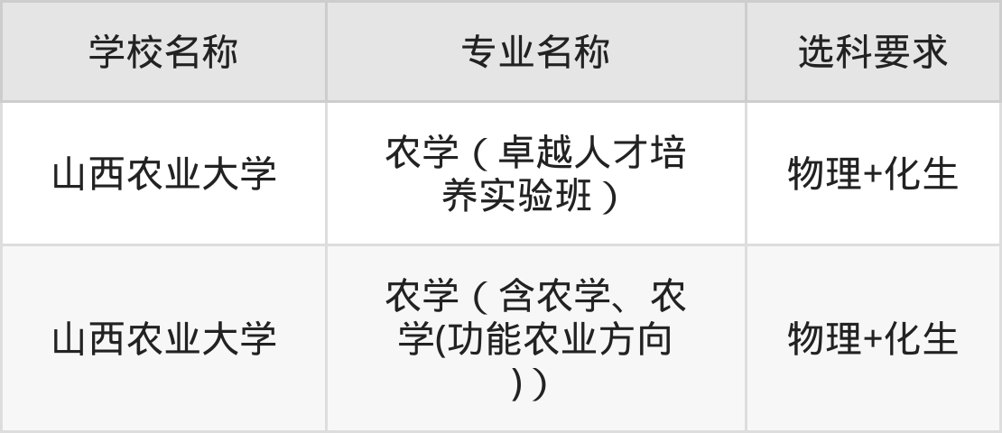 | 内蒙古农业大学 | 农学(含卓越农林 计划) | 物理+化 |