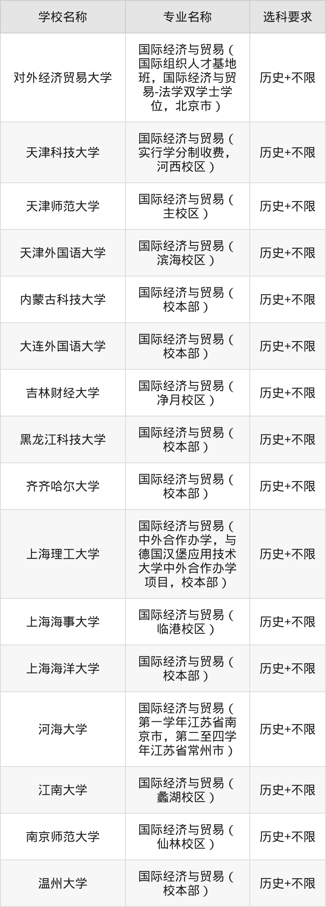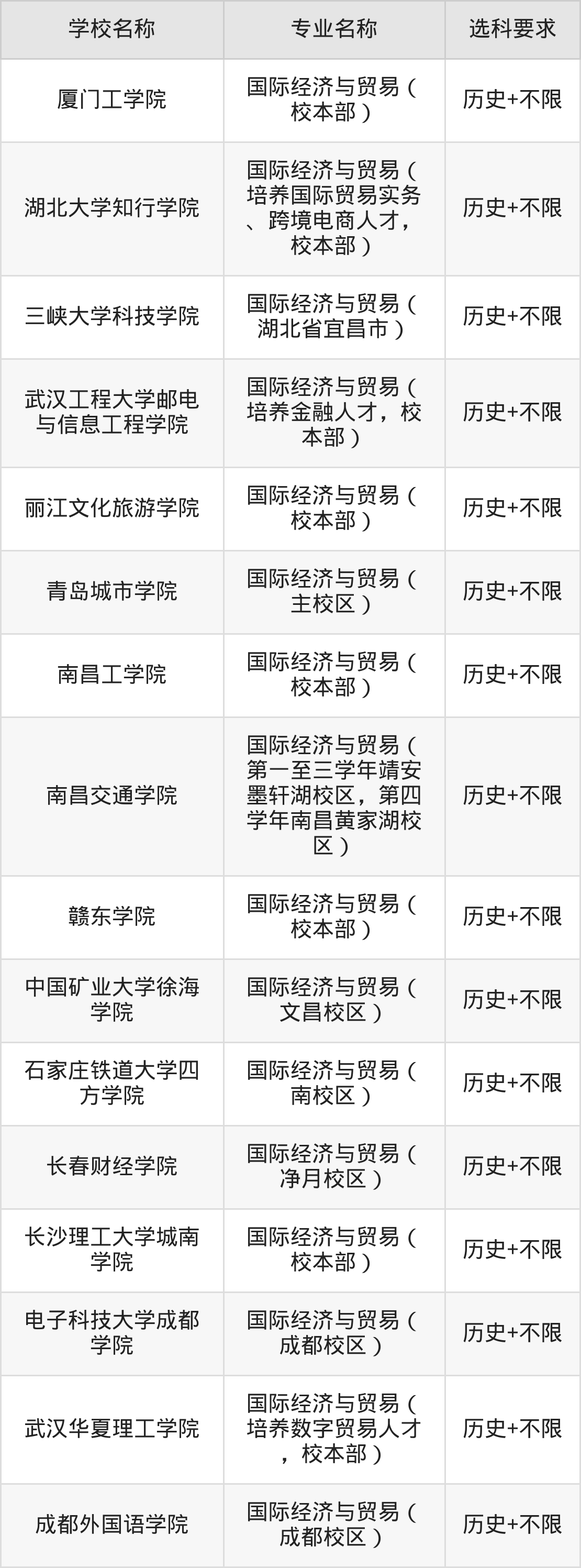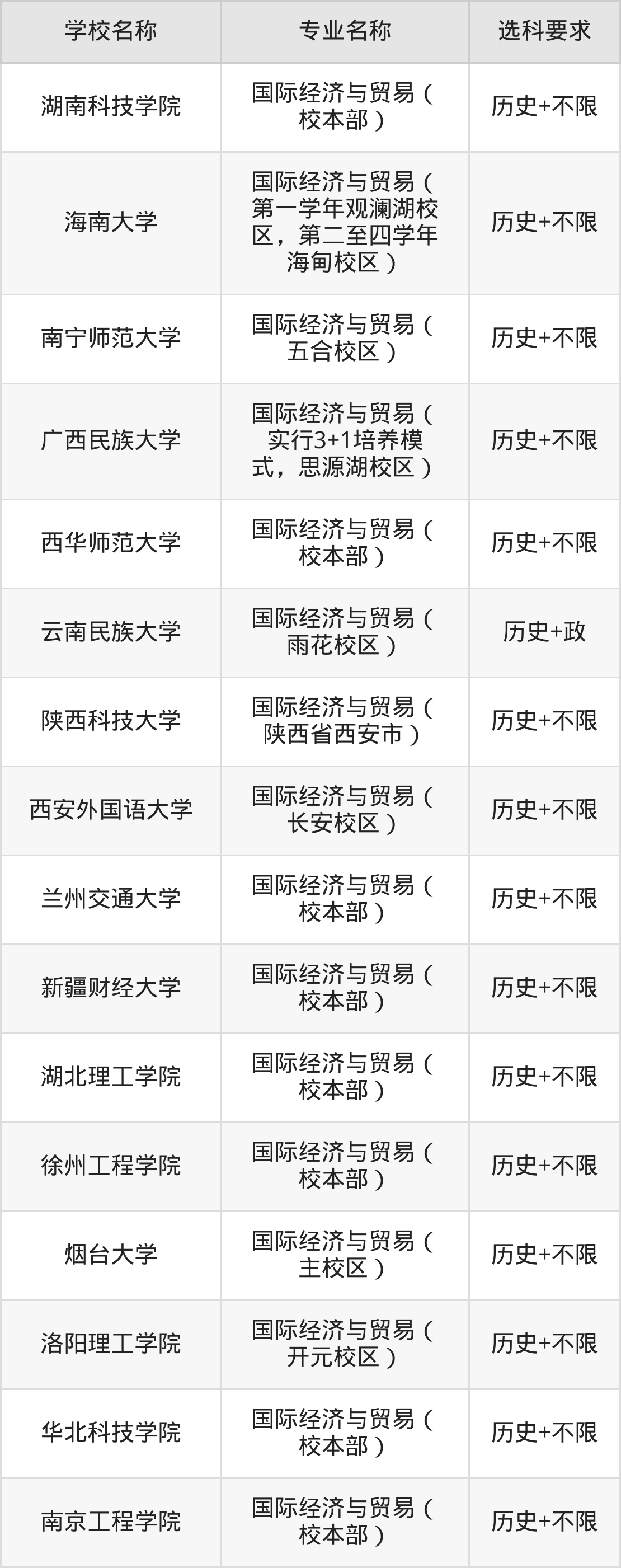 | 昆明理工大学津桥 学院 | 国际经济与贸易( 主校区) | 物理+不限 |