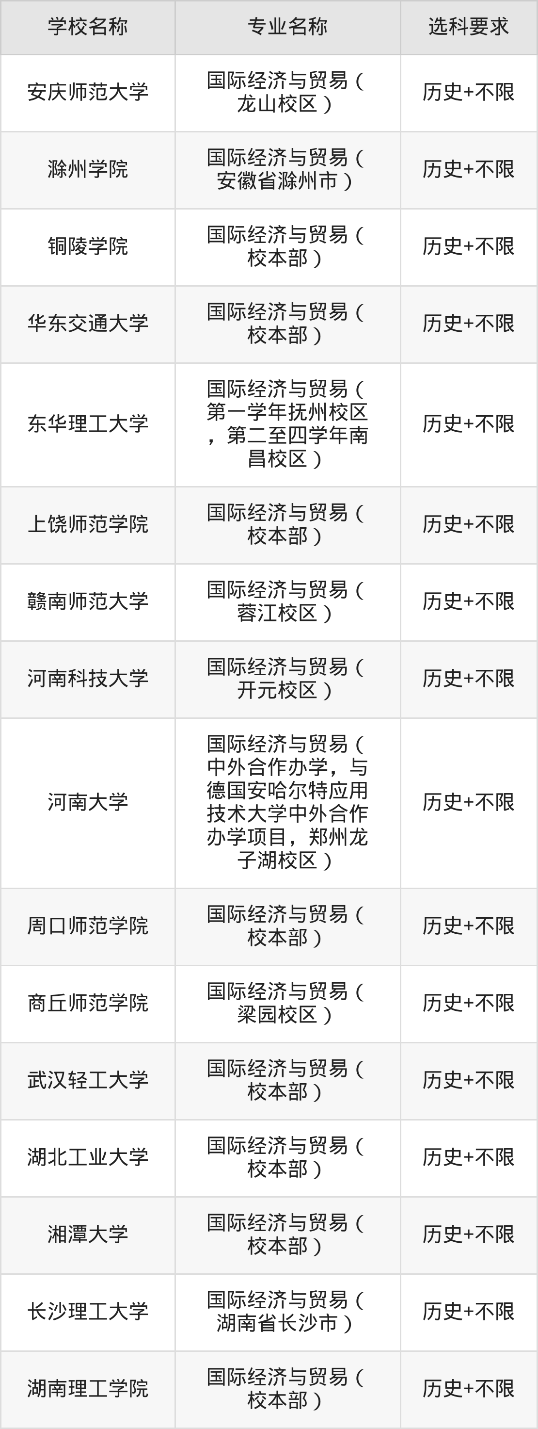 | 湖南工业大学 | 国际经济与贸易( 河东校区) | 物理+不限 |