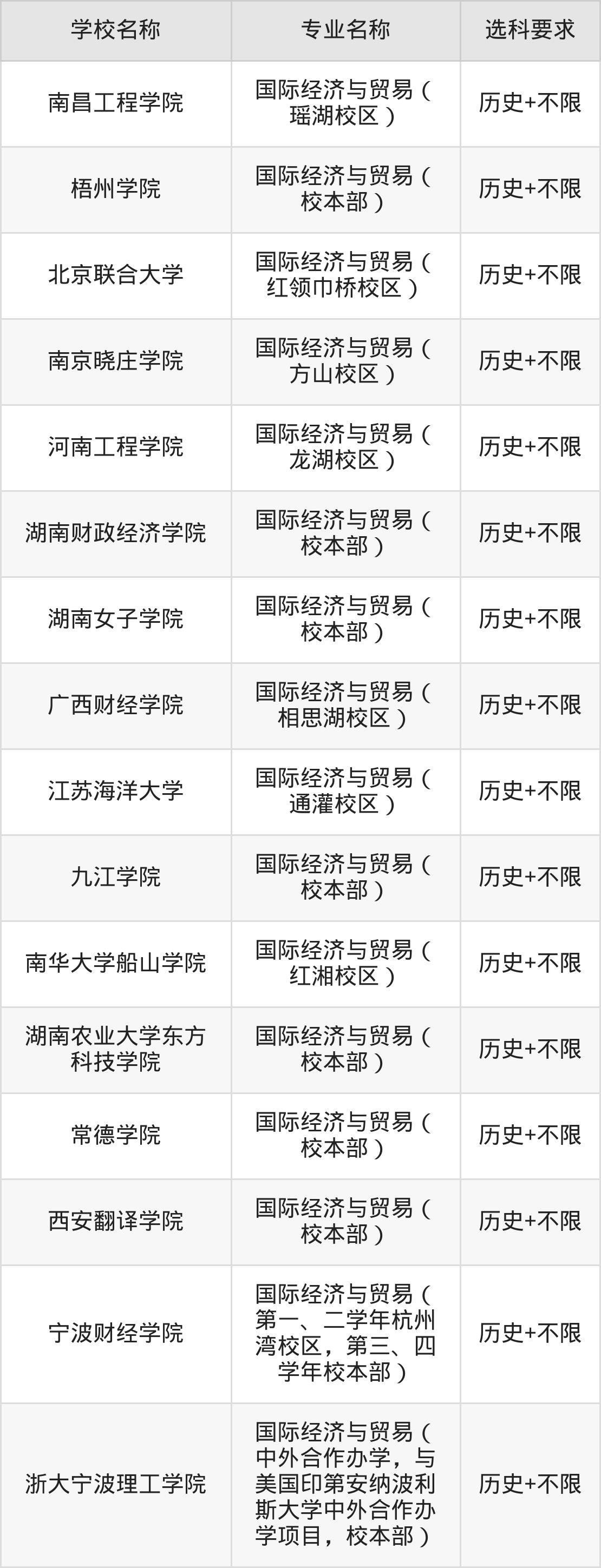 | 南京理工大学紫金 学院 | 国际经济与贸易( 主校区) | 物理+不限 |