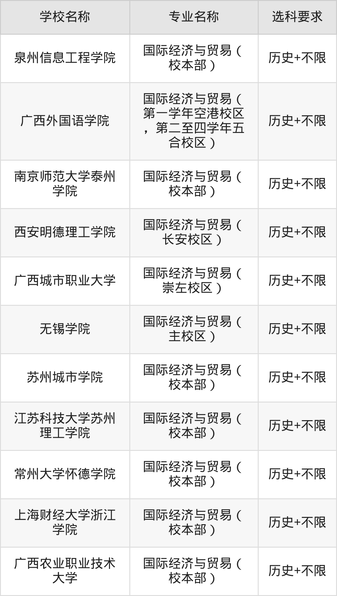 | 南宁理工学院 | 国际经济与贸易( 东盟校区) | 物理+不限 |