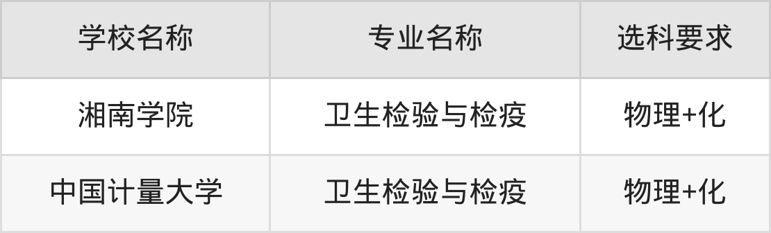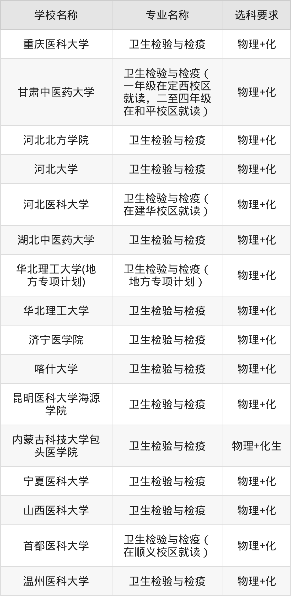 2025年物政地组合的高考生,不可以报考卫生检验与检疫专业。
