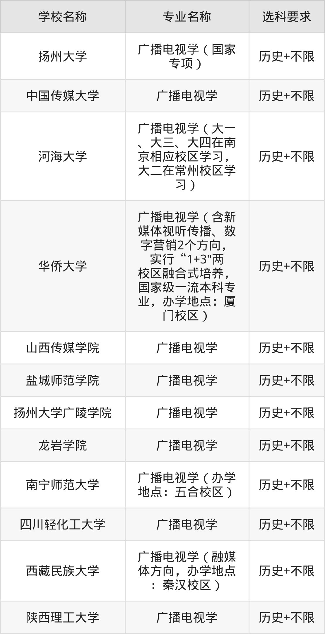 | 四川师范大学 | 广播电视学(办学 地点:狮子山校区) | 物理+不限 |