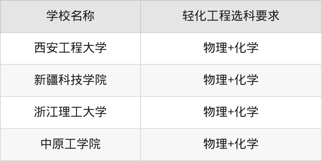 物政地组合的考生不符合这部分学校的选科要求,所以不可以报考这些学校的轻化工程专业。比如:华东理工大学、北京服装学院、大连工业大学、河北科技大学、吉林化工大学、嘉兴大学、江南大学等。