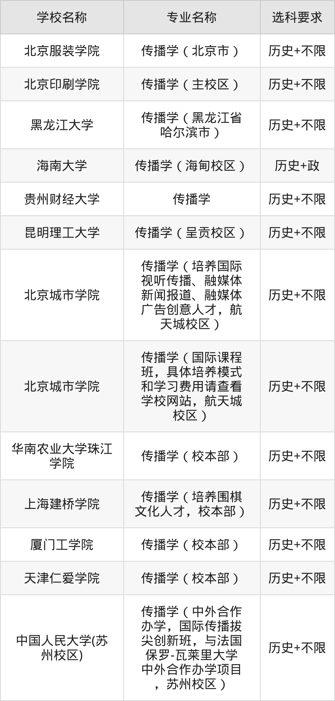 | 中国传媒大学 | 传播学(中外合作 办学,与美国密苏 里哥伦比亚大学中 外合作办学项目, 校本部) | 物理+不限 |