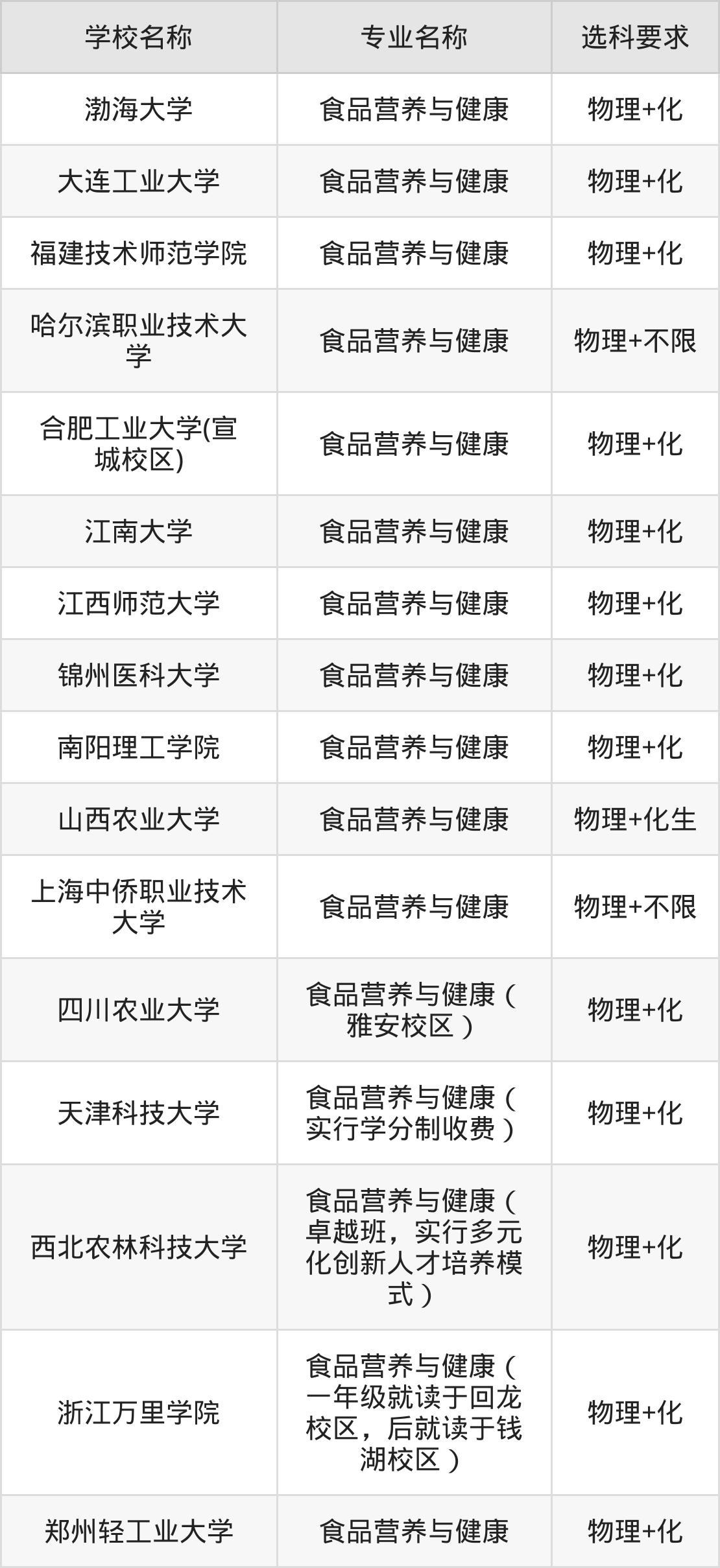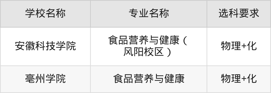 原因是:在安徽高考以“食品营养与健康”专业名称招生的18所本科大学中,有15所大学的食品营养与健康专业在招生时要求高考生必选“物理+化”,有2所大学的食品营养与健康专业在招生时要求高考生必选“物理+不限”,有1所大学的食品营养与健康专业在招生时要求高考生必选“物理+化生”。