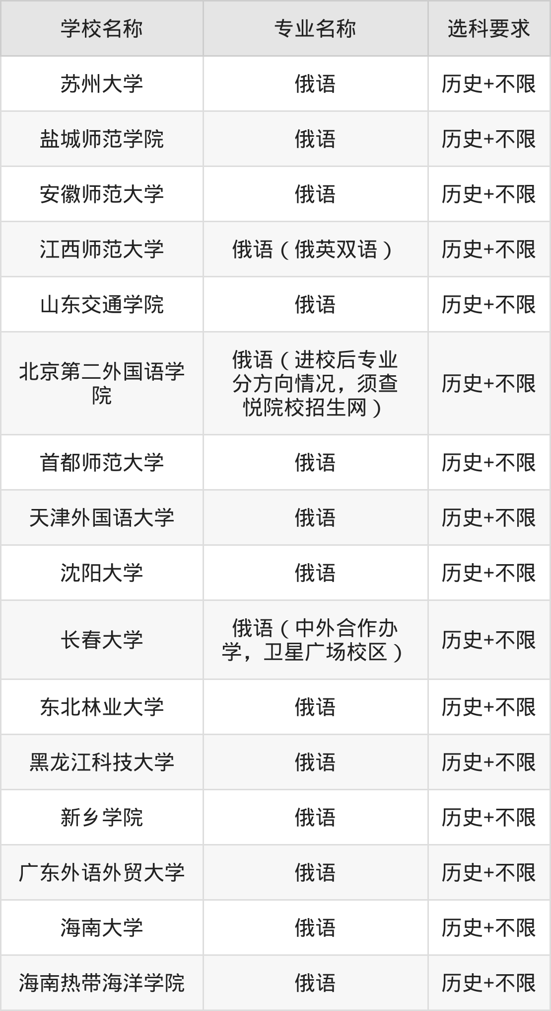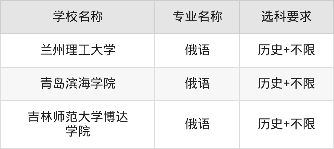 | 长春人文学院 | 俄语 | 物理+不限 |