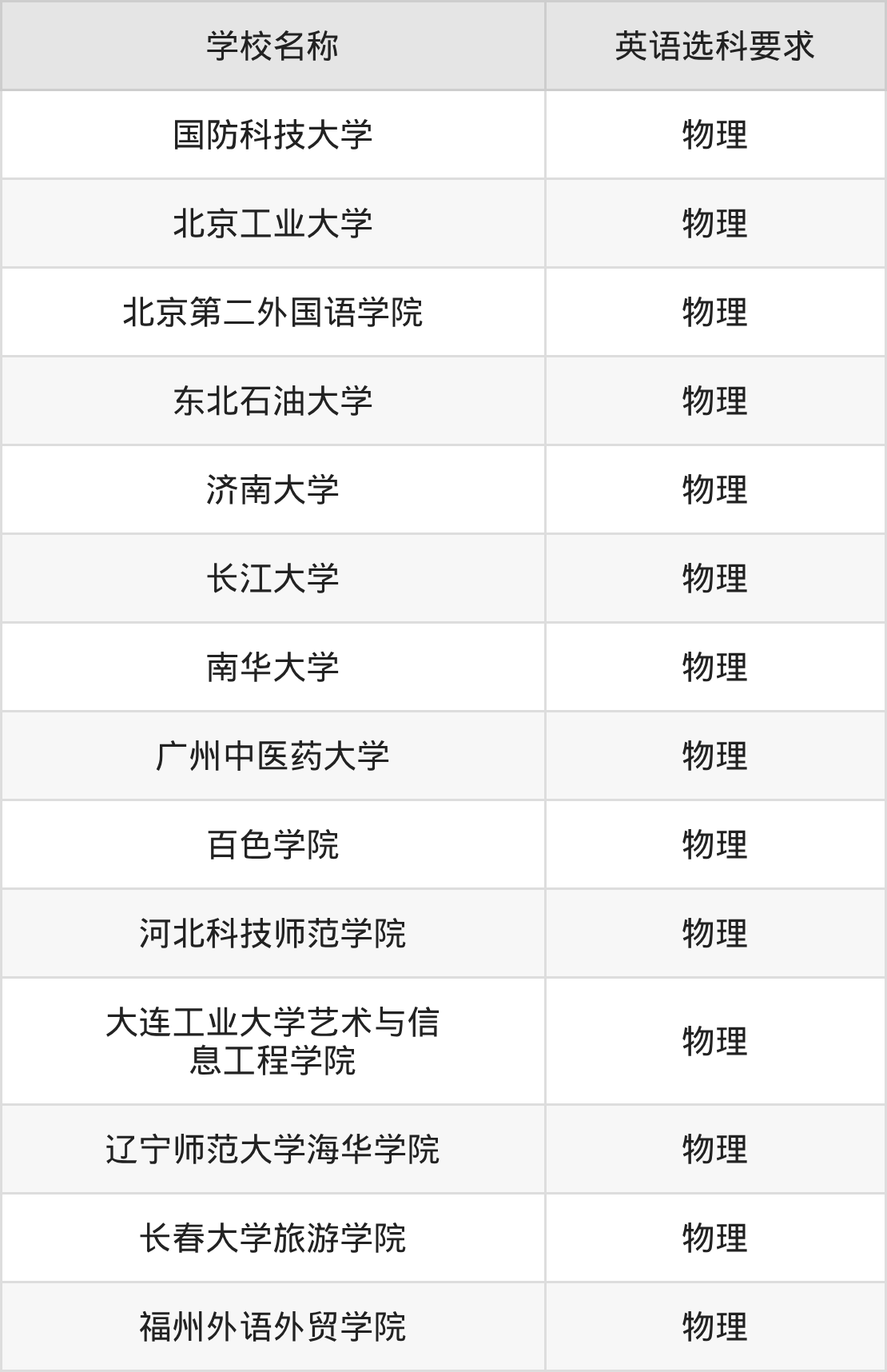 | 学校名称 | 英语选科要求 |