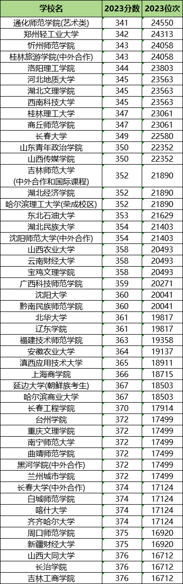 按照全国大学2023年在黑龙江文科本科二批次录取分数线高低排名,老师发现全国一共有338所公办二本院校在黑龙江文科招生,其中: