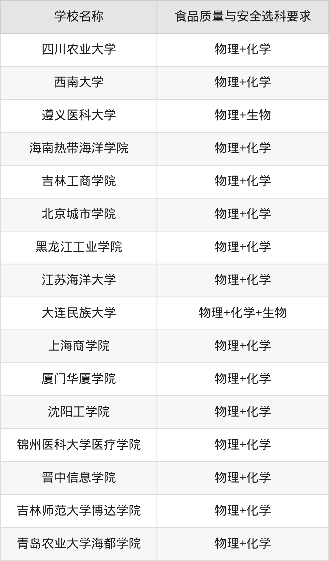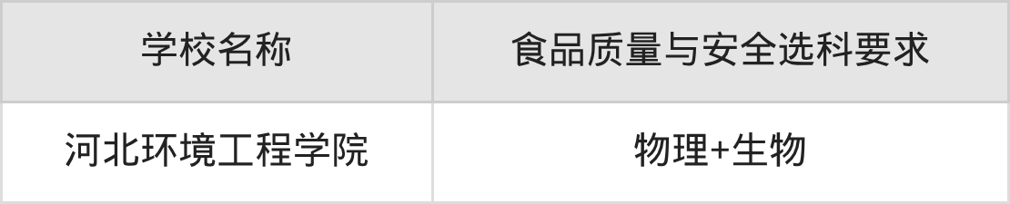 以辽宁高考最新招生计划为例进行统计,在不可报的学校中,有30所本科大学的食品质量与安全专业招生时,要求考生必选“物理+化学”,有2所本科大学的食品质量与安全专业招生时,要求考生必选“物理+生物”,有1所本科大学的食品质量与安全专业招生时,要求考生必选“物理+化学+生物”。