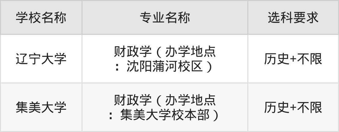 | 云南财经大学 | 财政学(第一学期 在安宁校区学习, 办学地点:龙泉路 校区) | 物理+不限 |