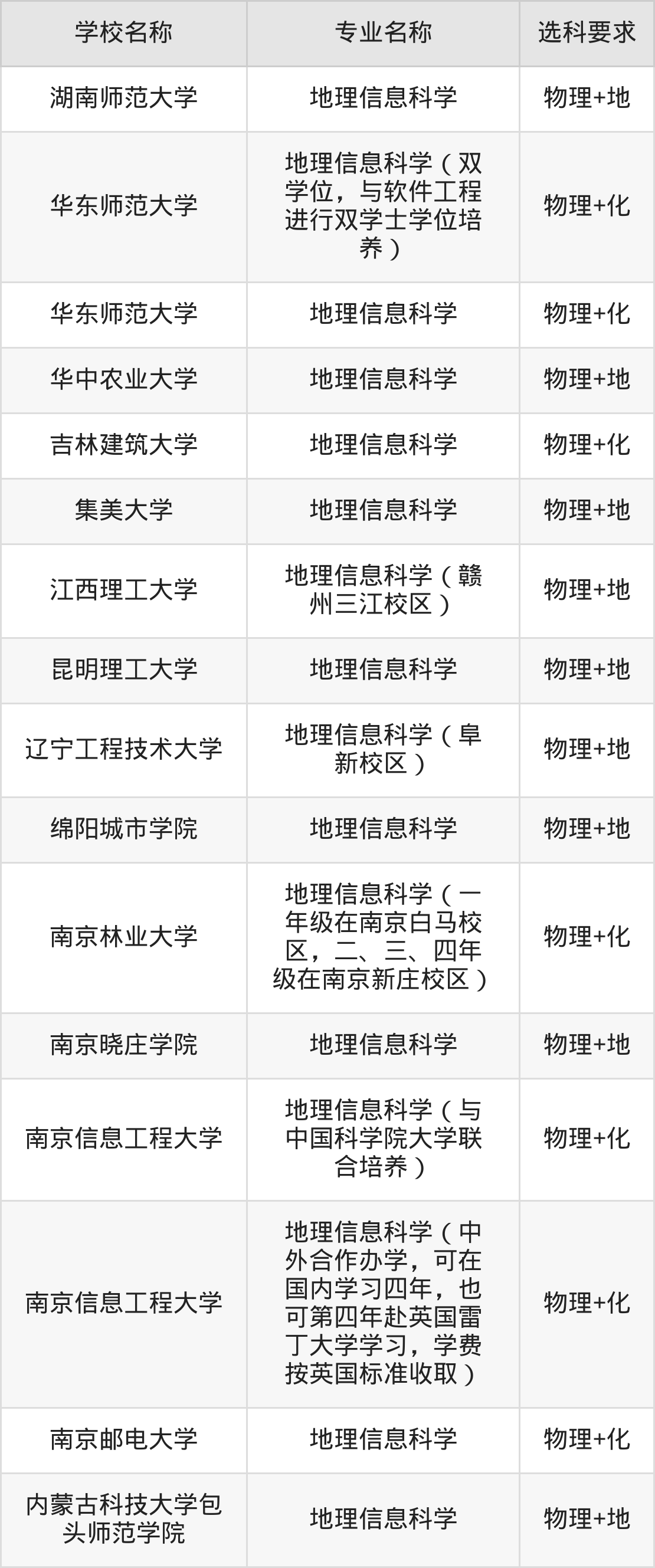 | 赣南师范大学 | 地理信息科学 | 历史+地 |