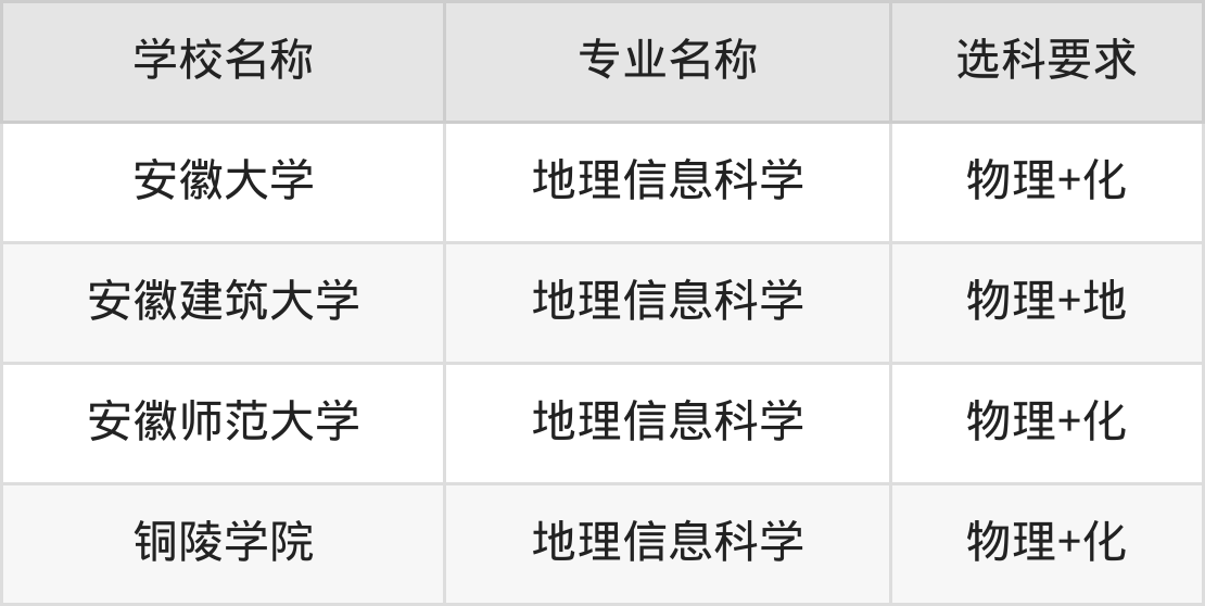 | 安徽科技学院 | 地理信息科学(凤 阳校区) | 历史+地 |