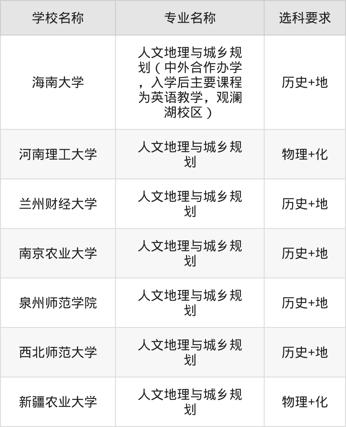 | 石河子大学 | 人文地理与城乡规 划 | 物理+地 |