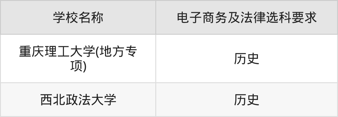 | 学校名称 | 电子商务及法律选科要求 |