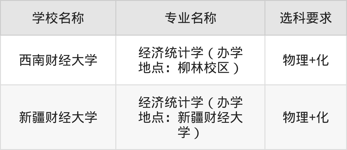 | 西南政法大学 | 经济统计学(办学 地点:渝北校区) | 物理+不限 |