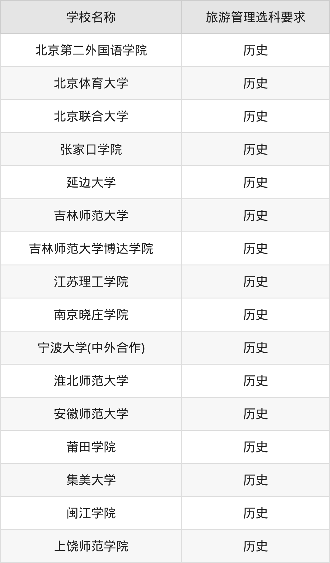 以重庆高考最新招生计划为例进行统计,在不可报的学校中,有52所本科大学的旅游管理专业招生时,要求考生必选“历史”,有2所本科大学的旅游管理专业招生时,要求考生必选“历史+地理”,有1所本科大学的旅游管理专业招生时,要求考生必选“历史+政治+地理”。