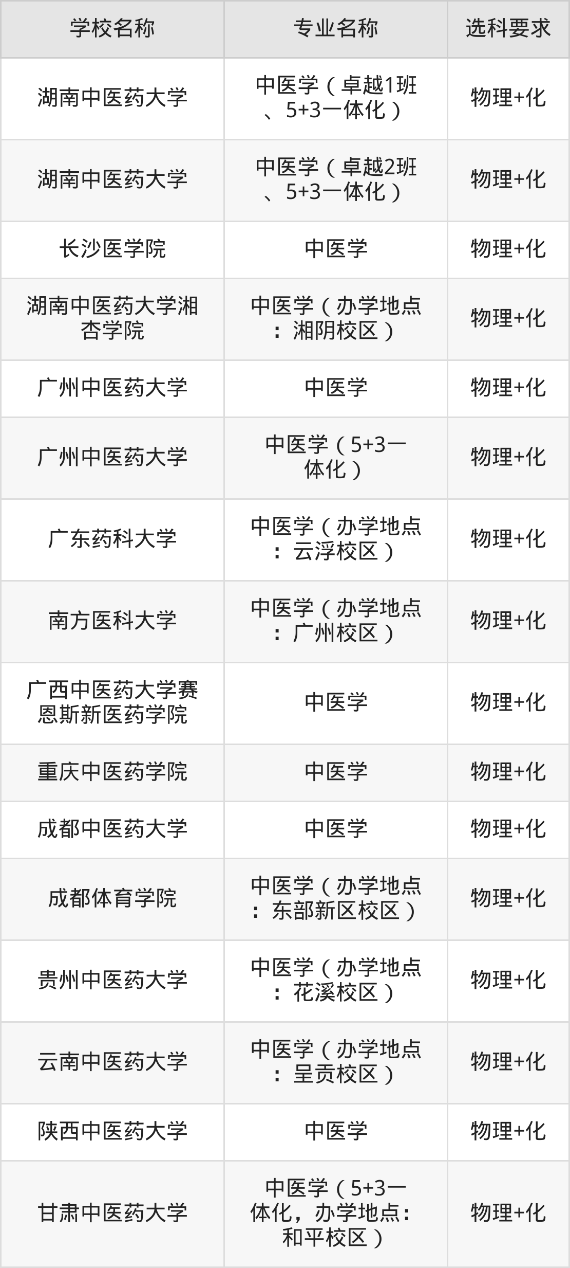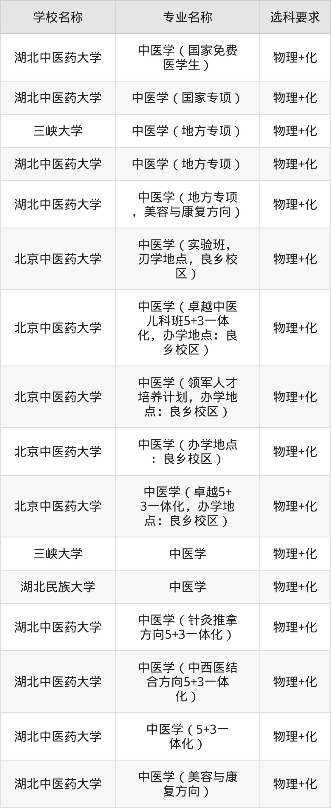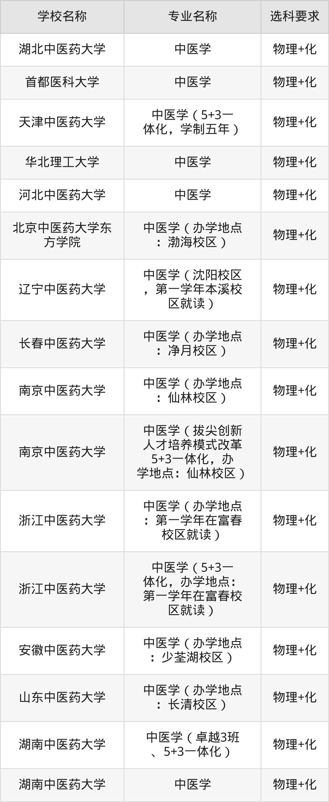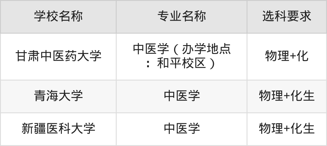 | 山西中医药大学 | 中医学 | 物理+生 |
