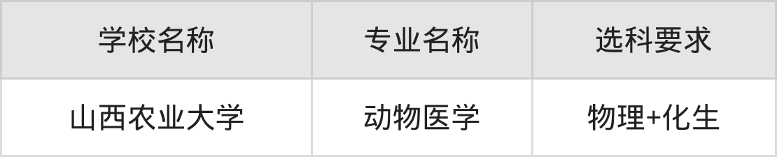 | 江西农业大学 | 动物医学(办学地 点:南北校区) | 物理+化 |