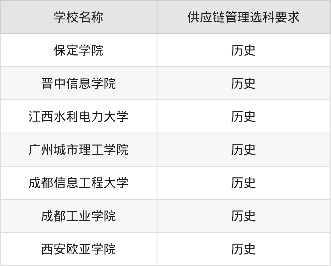以重庆高考最新招生计划为例进行统计,在不可报的学校中,有7所本科大学的供应链管理专业招生时,要求考生必选“历史”。