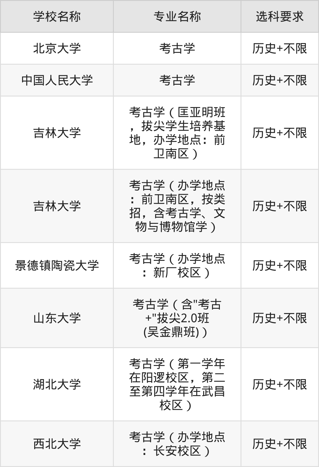 如果你是高中选了“物理、化学、地理”的学生,未来想读考古学专业,那么便可以考虑选科要求为“物理+不限”的山西大学等学校。