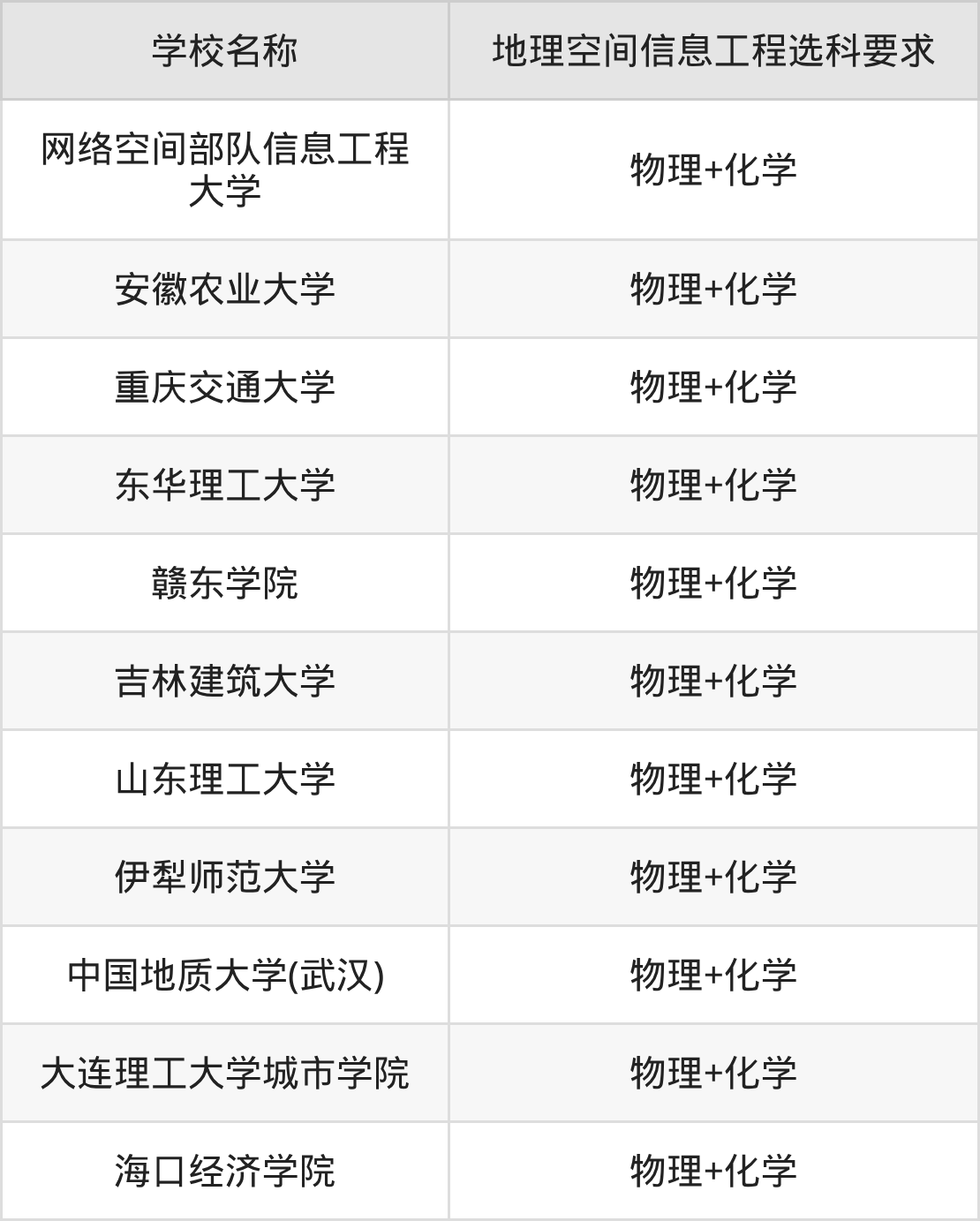 以河北高考最新招生计划为例进行统计,在不可报的学校中,有11所本科大学的地理空间信息工程专业招生时,要求考生必选“物理+化学”。