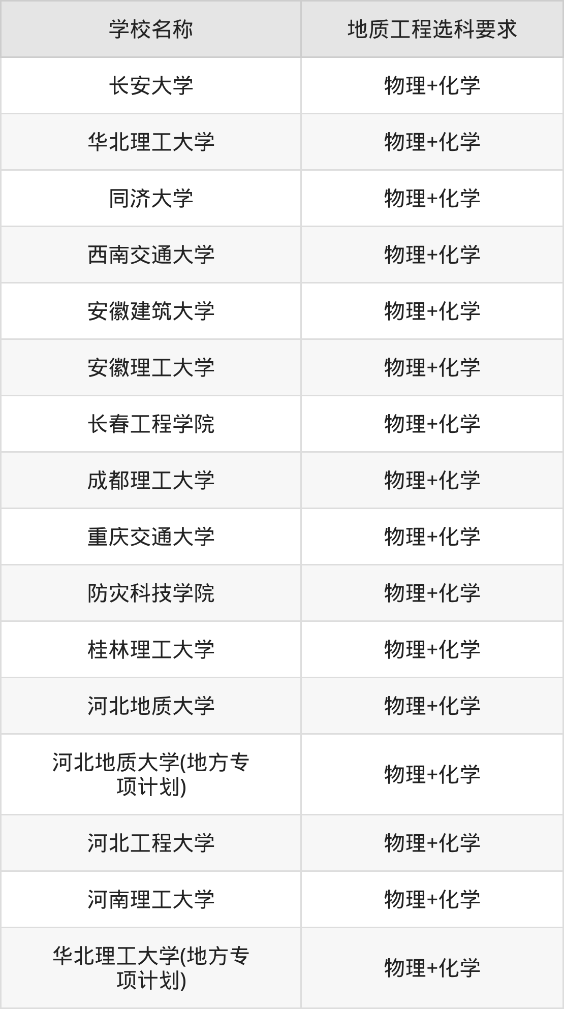 物政地组合的考生不符合这部分学校的选科要求,所以不可以报考这些学校的地质工程专业。比如:长安大学、华北理工大学、同济大学、西南交通大学、安徽建筑大学、安徽理工大学、长春工程学院等。