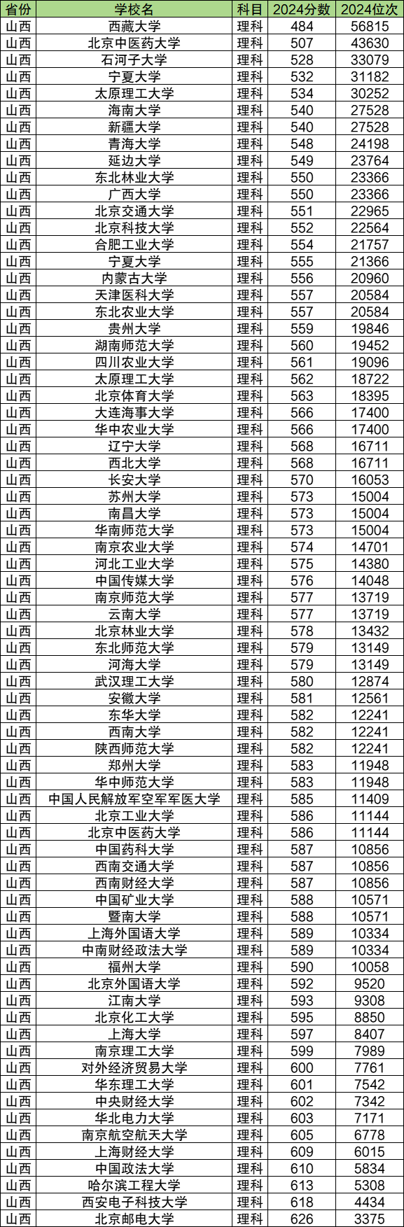 2024年在山西理科211大学中,北京邮电大学投档分数最高,该校最低收分626分。