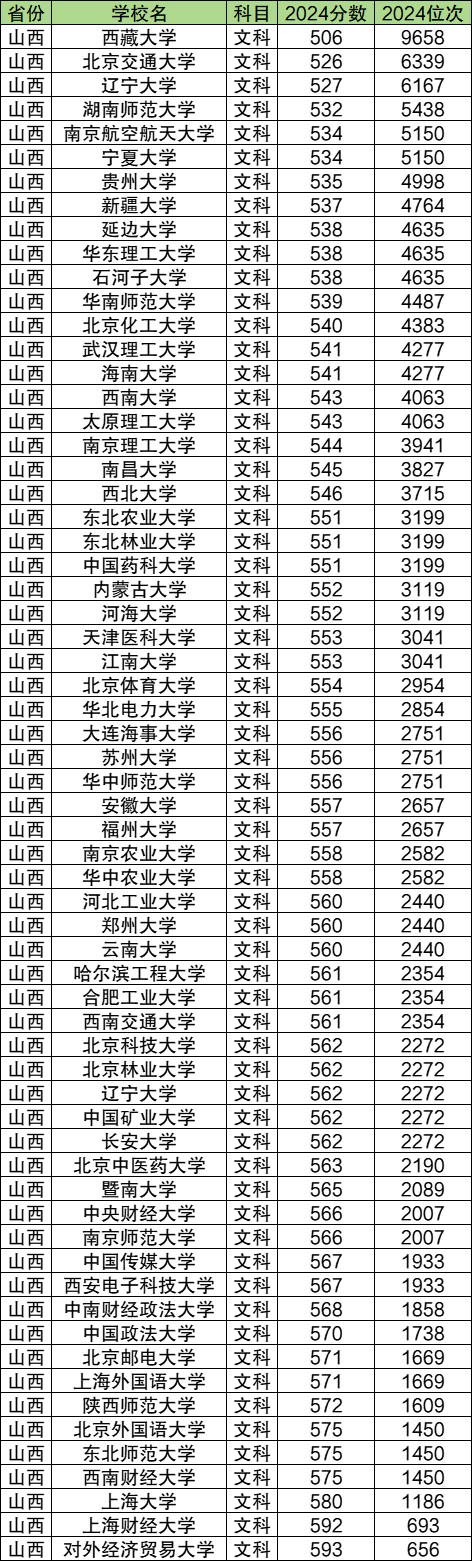 下文为山西文科211大学录取分数线一览表,供大家参考: