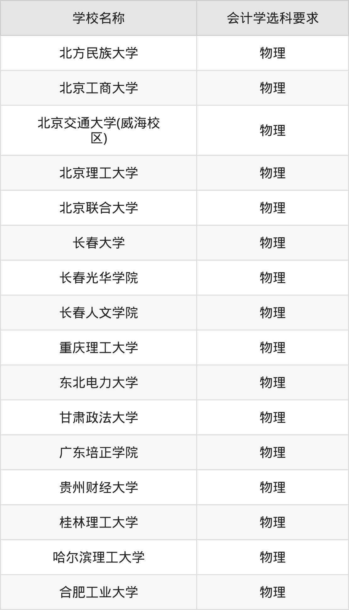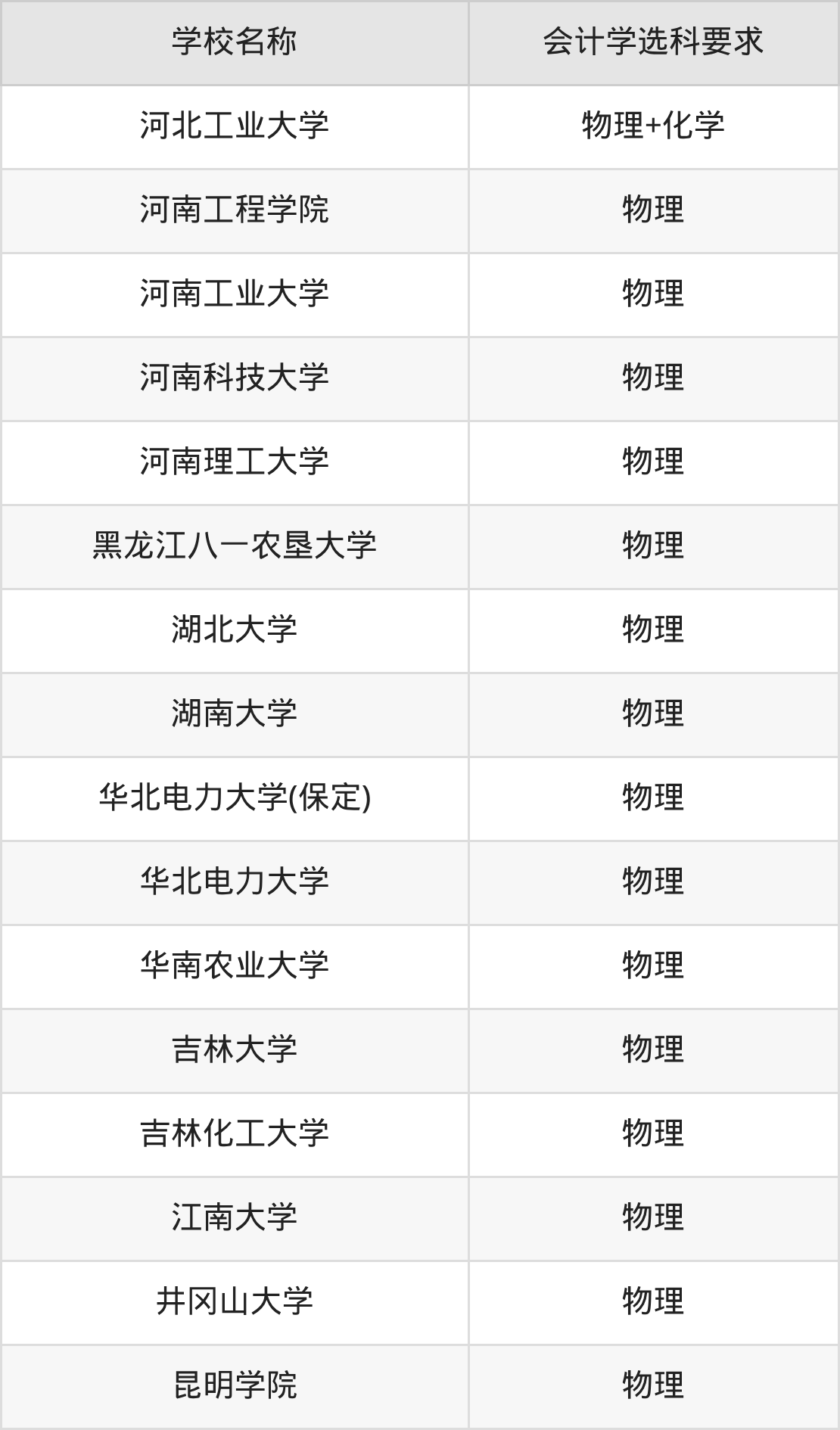 以安徽高考最新招生计划为例进行统计,在不可报的学校中,有70所本科大学的会计学专业招生时,要求考生必选“物理”,有2所本科大学的会计学专业招生时,要求考生必选“物理+化学”。
