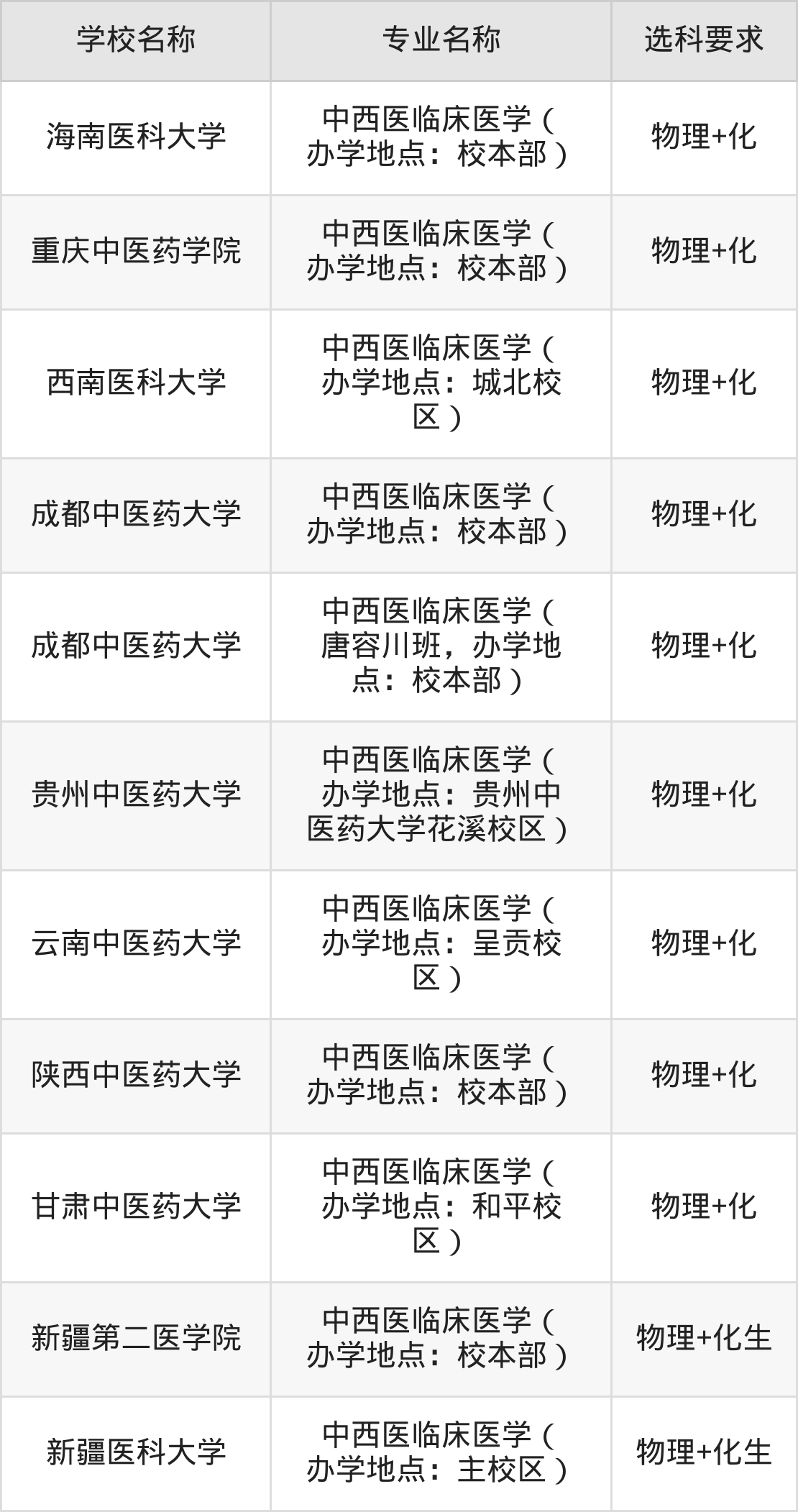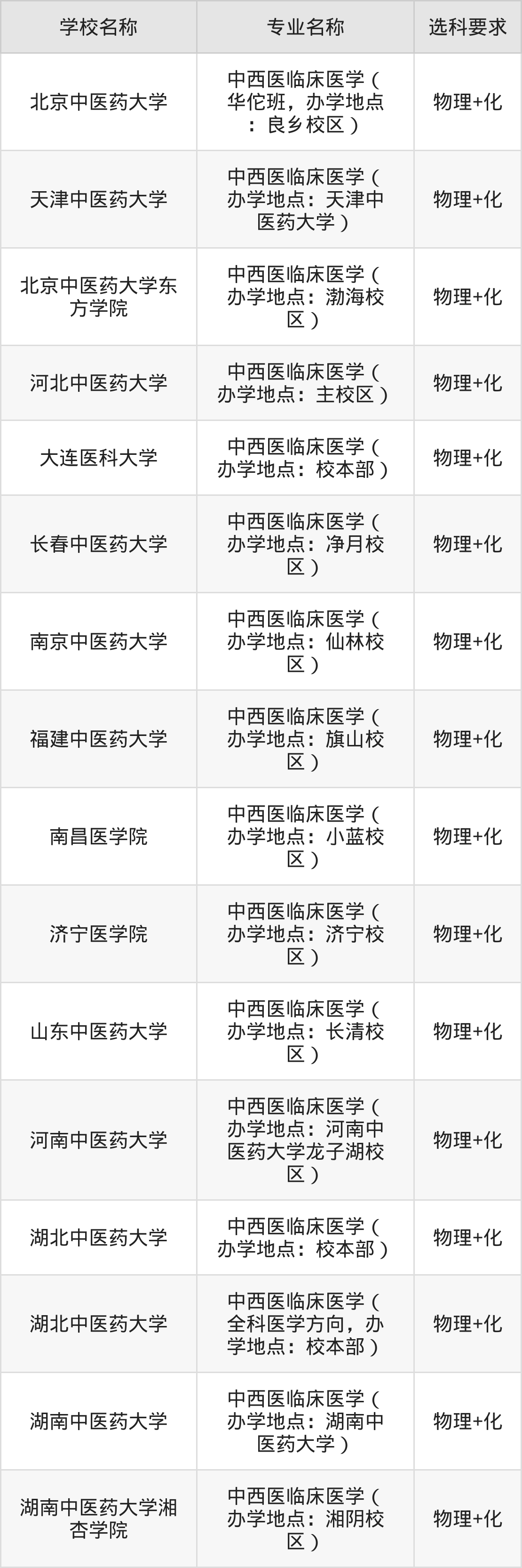 | 黑龙江中医药大学 | 中西医临床医学( 办学地点:校本部) | 物理+生 |
