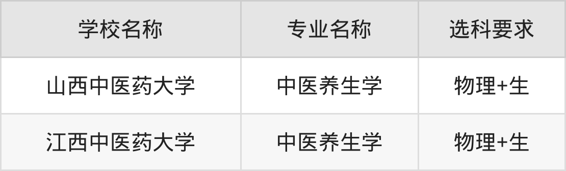 物化地组合的考生不符合这部分学校的选科要求,所以不可以报考这些学校的中医养生学专业。比如:山西中医药大学、江西中医药大学等。