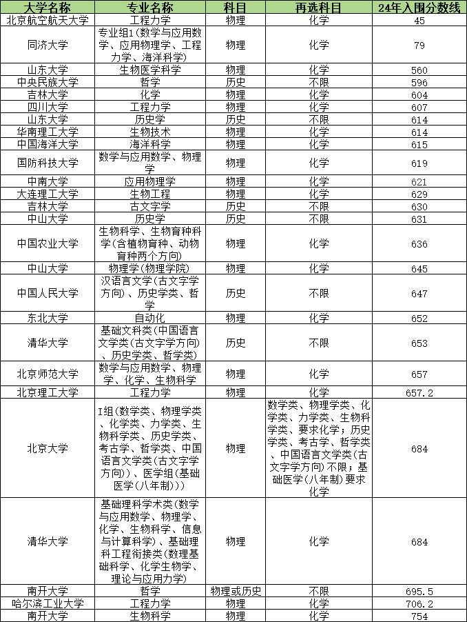 对于历史组考生而言,最低入围分数线是596分,对应的是中央民族大学大学哲学专业,再选科目要求不限。