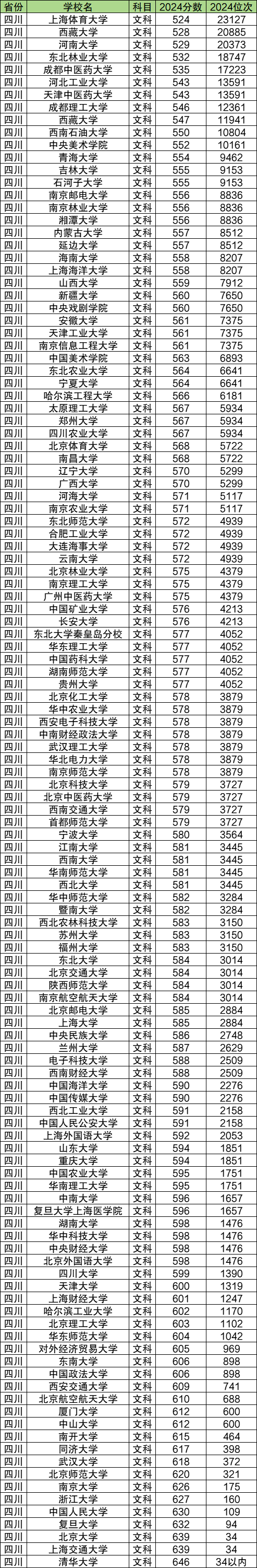 2024年四川文科双一流大学录取分数线较高的院校是清华大学,最低分646分。