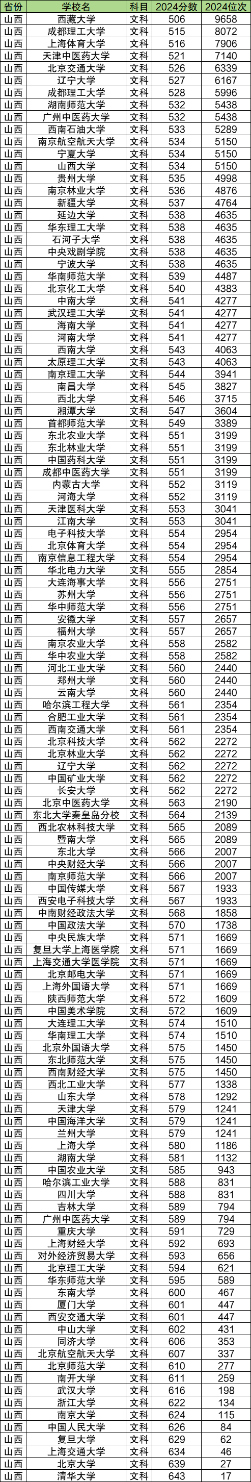 下文为山西文科双一流大学录取分数线一览表,供大家参考: