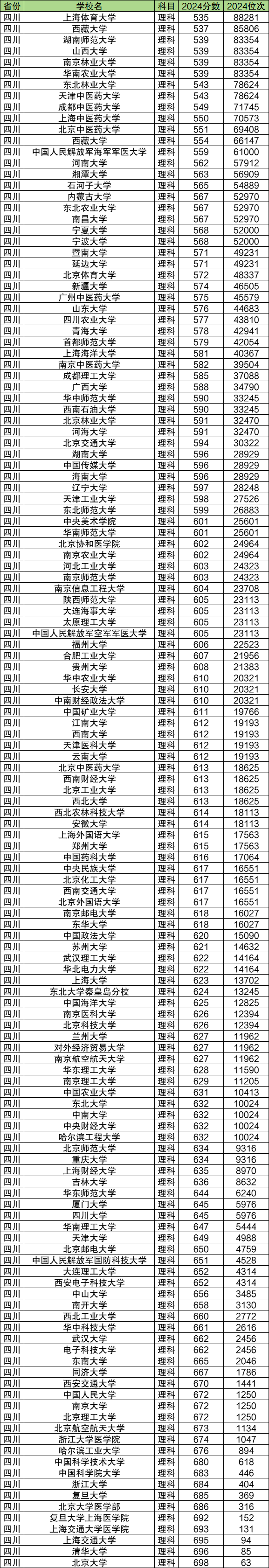 2024年四川理科双一流大学录取分数线最高的院校是北京大学,录取分数线为698分;下表为四川理科双一流大学录取分数线一览表,供大家参考: