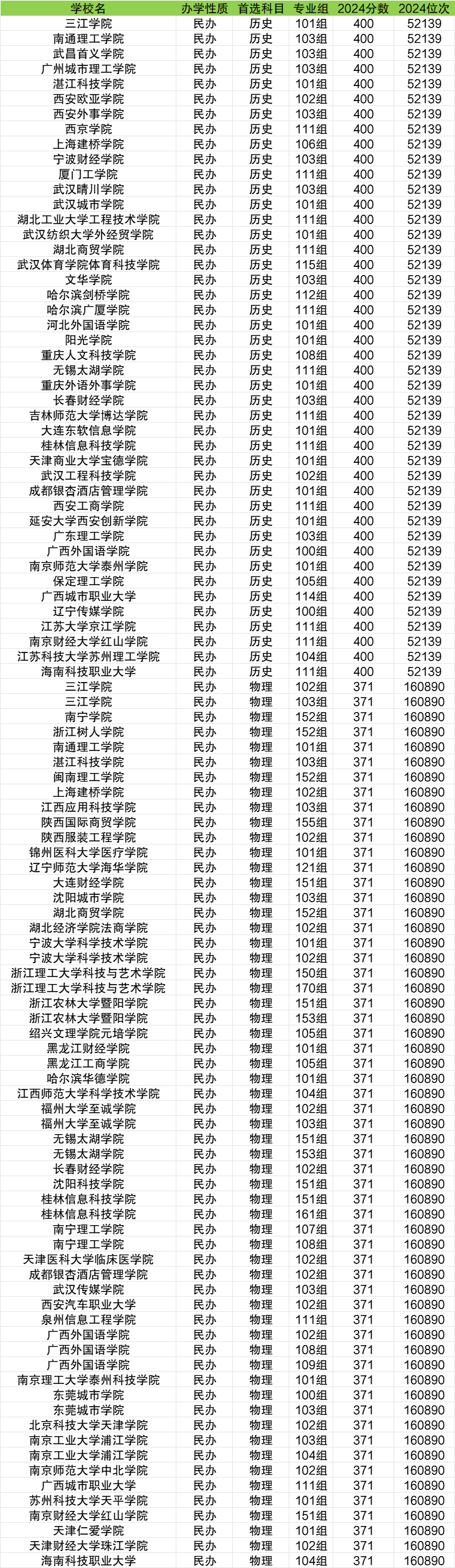 不同省份本科线最低可上的民办大学不同,下面以江西、广西、贵州省份为例,为大家列举2024年本科分数最低的民办大学名单。