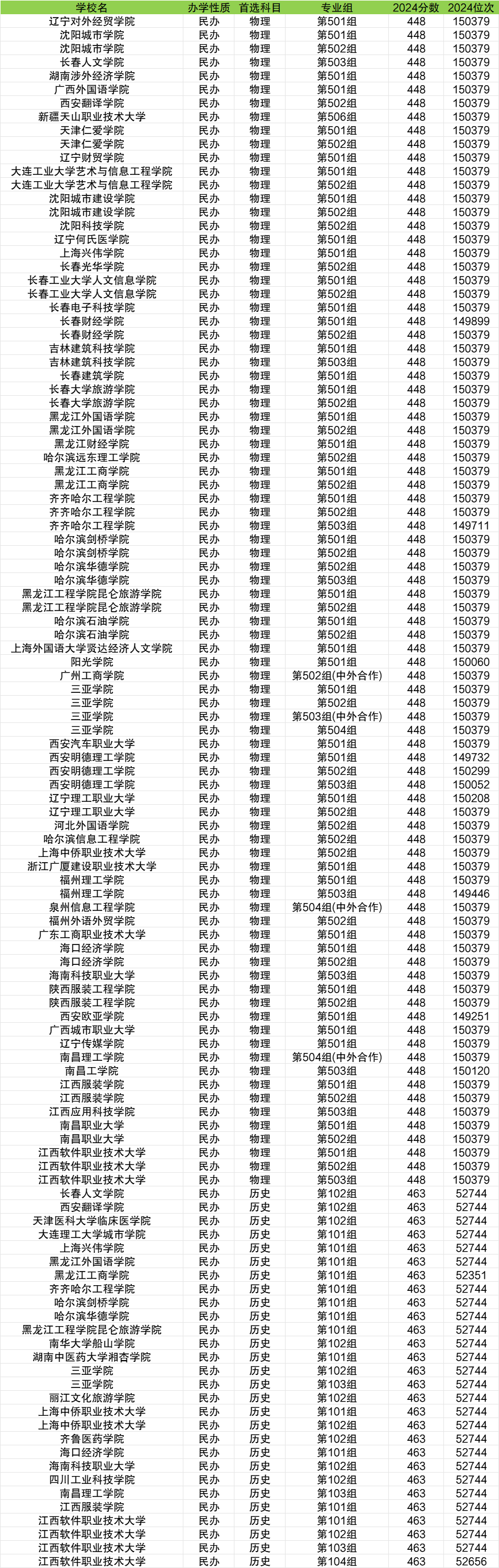 物理类本科线最低的民办大学是江西软件职业技术大学503专业组、南昌职业大学501专业组、福州理工学院503专业组等,2024年最低分为448分,刚好为本科线分数,对应最低位次为150379名。