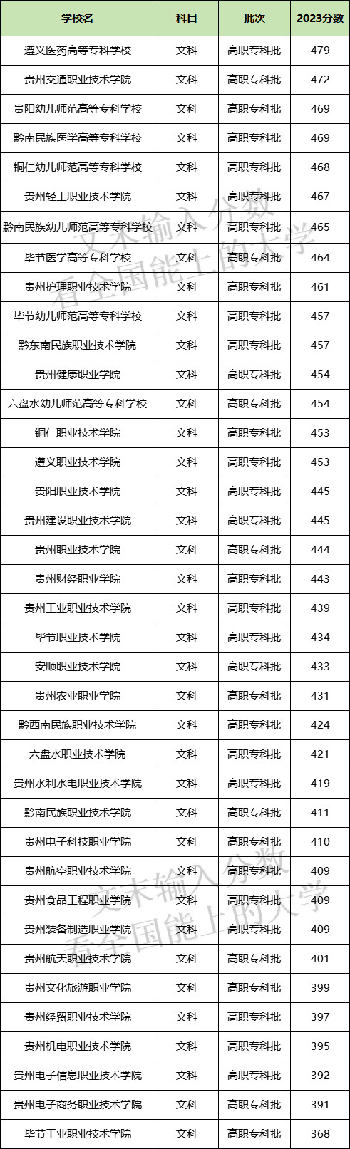 按照2023年贵州省所有公办专科学校在省内录取分数线高低排序,为大家整理出最难考与最好考的公办大专院校名单如下。