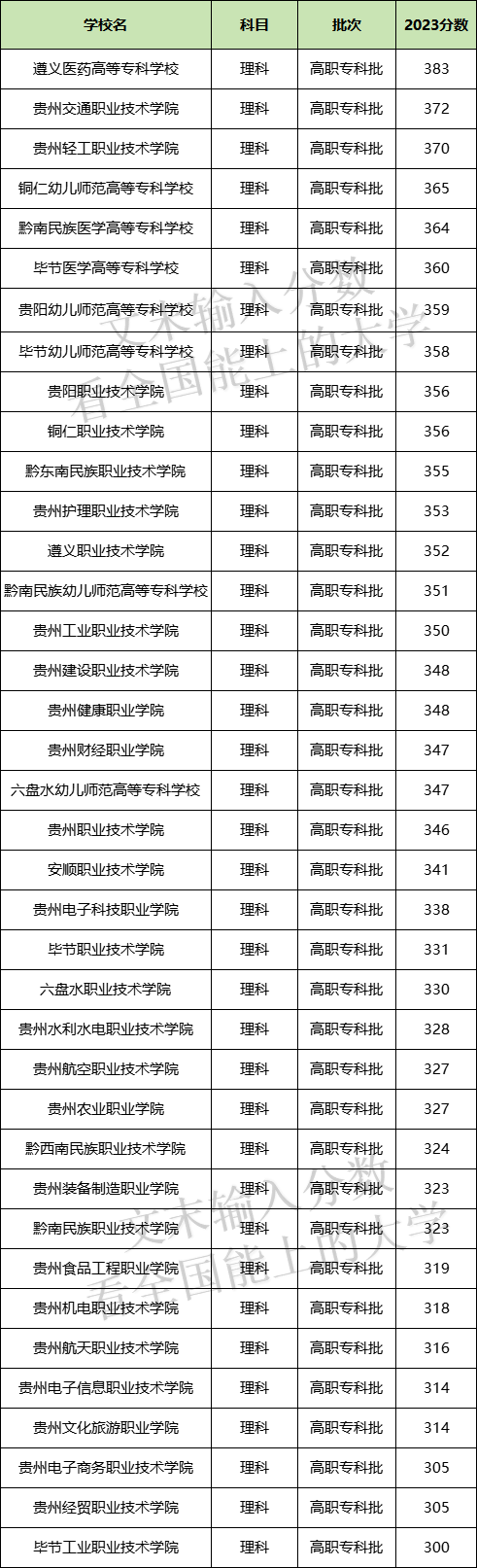理科最好考、收分最低的是毕节工业职业技术学院,2023最低分文科是368分,对应位次100942;理科是300分,对应位次189800。