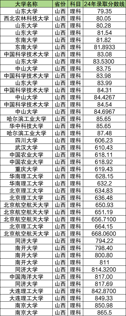 2024年在山西理科强基计划学校中,南京大学投档分数最高,该校最低收分865.5分。