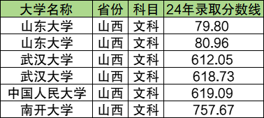 下文为山西文科强基计划学校录取分数线一览表,供大家参考: